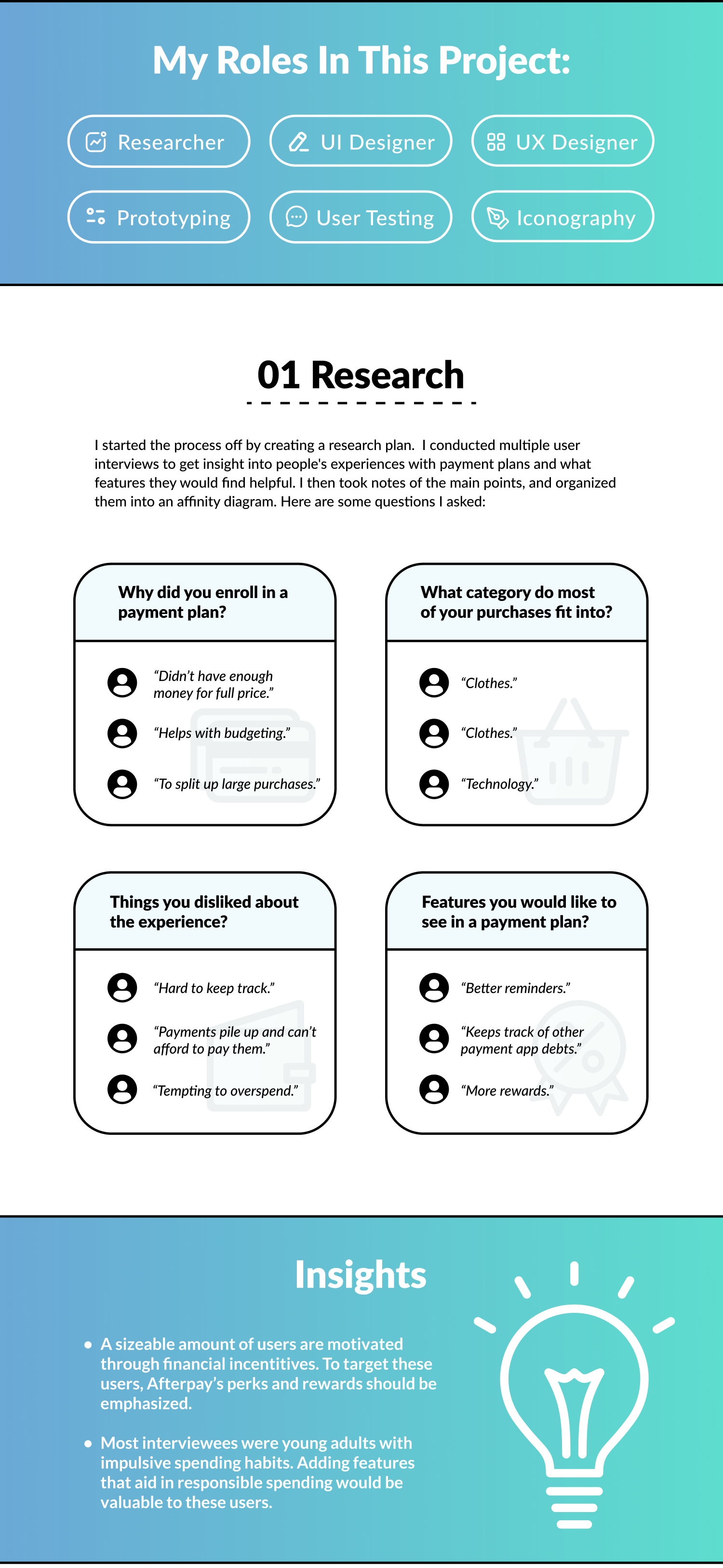 This is a complete UX case study for the Afterpay® website redesign. Afterpay is a digital platform that allows users to purchase items in installments and track their payments.